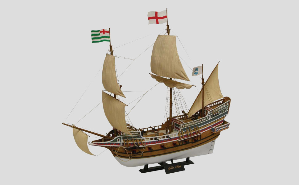 The Golden Hind was an English galleon best known for its global circumnavigation between 1577 and 1580, captained by Sir Francis Drake, who on his return with a haul of Spanish gold and other treasures was knighted by Queen Elizabeth. The Hind was a well armed and nimble galleon, she was orginally commissioned as The Pelican and built in Deptford, London, where she was launched in 1577. She was the flagship of an expedition to explore the regions beyond South America commanded by Drake, with personnel support of Queen Elizabeth of England. Drake’s mission became one less of exploration and more of piracy as he wreaked havoc against Spanish interests in the region.